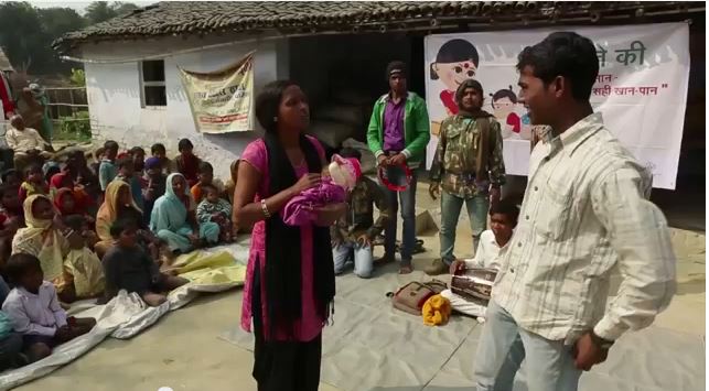 Examples in the video include [see related summaries below]: Its project on tuberculosis (TB) prevention and treatment in India uses radio, television, street theatre. A radio crew goes out to rural villages in Ethiopia and includes training of other radio professionals in their methodology using humour, emotion, and debate to reach audiences. The video features television soap operas (entertainment education) such as Wetin Dey, a programme broadcast in Nigeria for HIV prevention, among other issues, and animation, such as public service announcement (PSA) shorts on malaria, focused on bringing information on behaviour change to migrant workers (for whom a need for malaria protection might be new). It interviews a community health worker who uses a mobile phone and illustrated information cards in her visits with villagers in Bihar, India. Another project in India to promote condom use and normalise conversation around condoms used PSAs and a condom ringtone for mobiles.