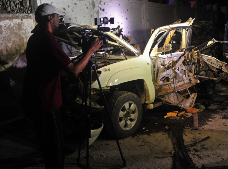 IMS website, October 14 2016. Image caption/credit: "A journalist films the wreckage of a car bomb outside a beach restaurant in the Somali capital Mogadishu on 25 August 2016 after an attack by alleged Al-Qaeda-linked Al Shabaab rebels." Mohamed Abdiwahab/scanpix