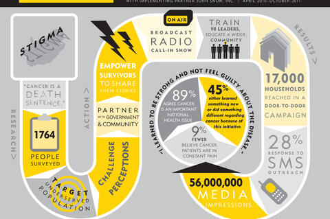 By partnering with local cancer organisations and encouraging survivors to tell their stories, LIVESTRONG and JSI, worked to offer the knowledge and resources needed to successfully confront fears and misconceptions about cancer. Through a four-pronged approach that included mass media, community outreach, events, and public relations, the project promoted survivor stories to raise awareness at the national and community levels about cancer and the stigma associated with it.