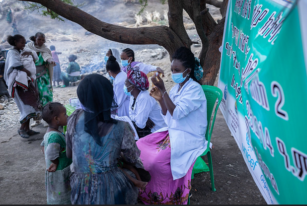 BMC Health Services Research (2022) 22:1277. https://doi.org/10.1186/s12913-022-08653-4. Image caption/credit: In early May 2022, the United Nations Children's Fund (UNICEF) supported a vaccination campaign in internally displaced person (IDP) sites and villages affected by conflict in the Waghimra zone of the Amhara region. Along with the campaign, children and pregnant women were screened for their nutrition status. ©UNICEF Ethiopia/2022/Mulugeta Ayene via Flickr (CC BY-NC-ND 2.0)